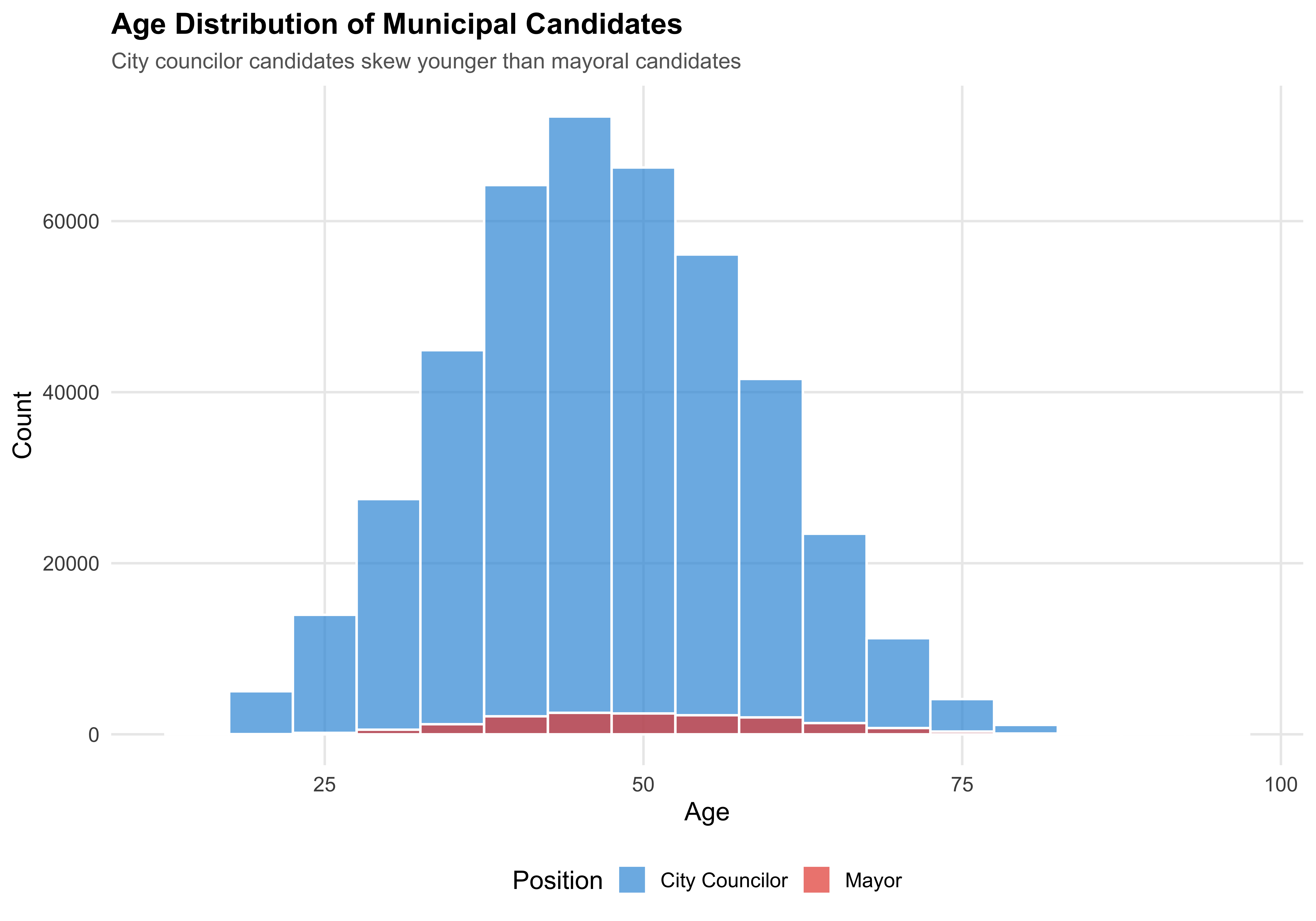 subtitle = "City councilor candidates skew younger than mayoral candidates")