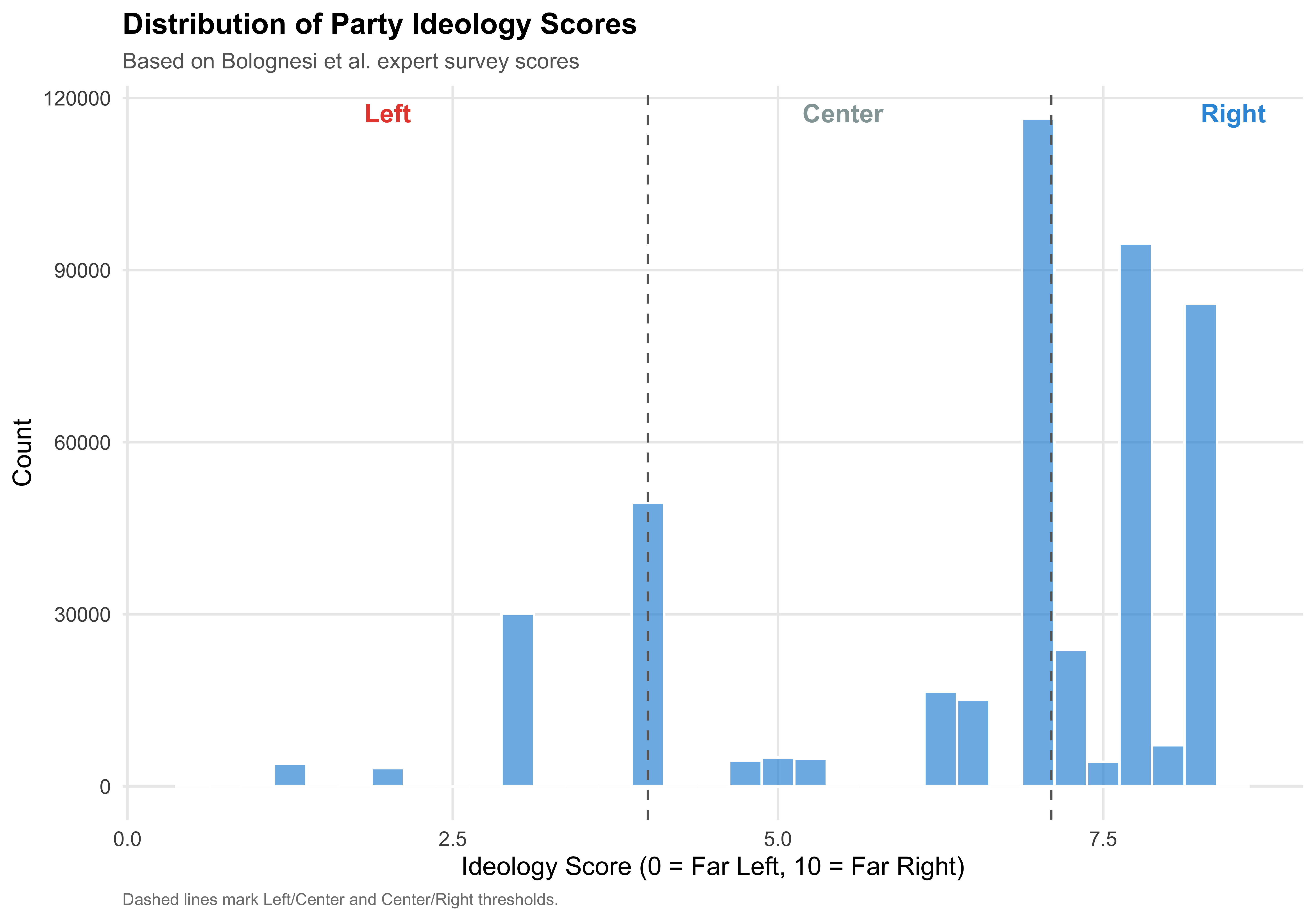 #| fig-cap: "Party Ideology Score Distribution"