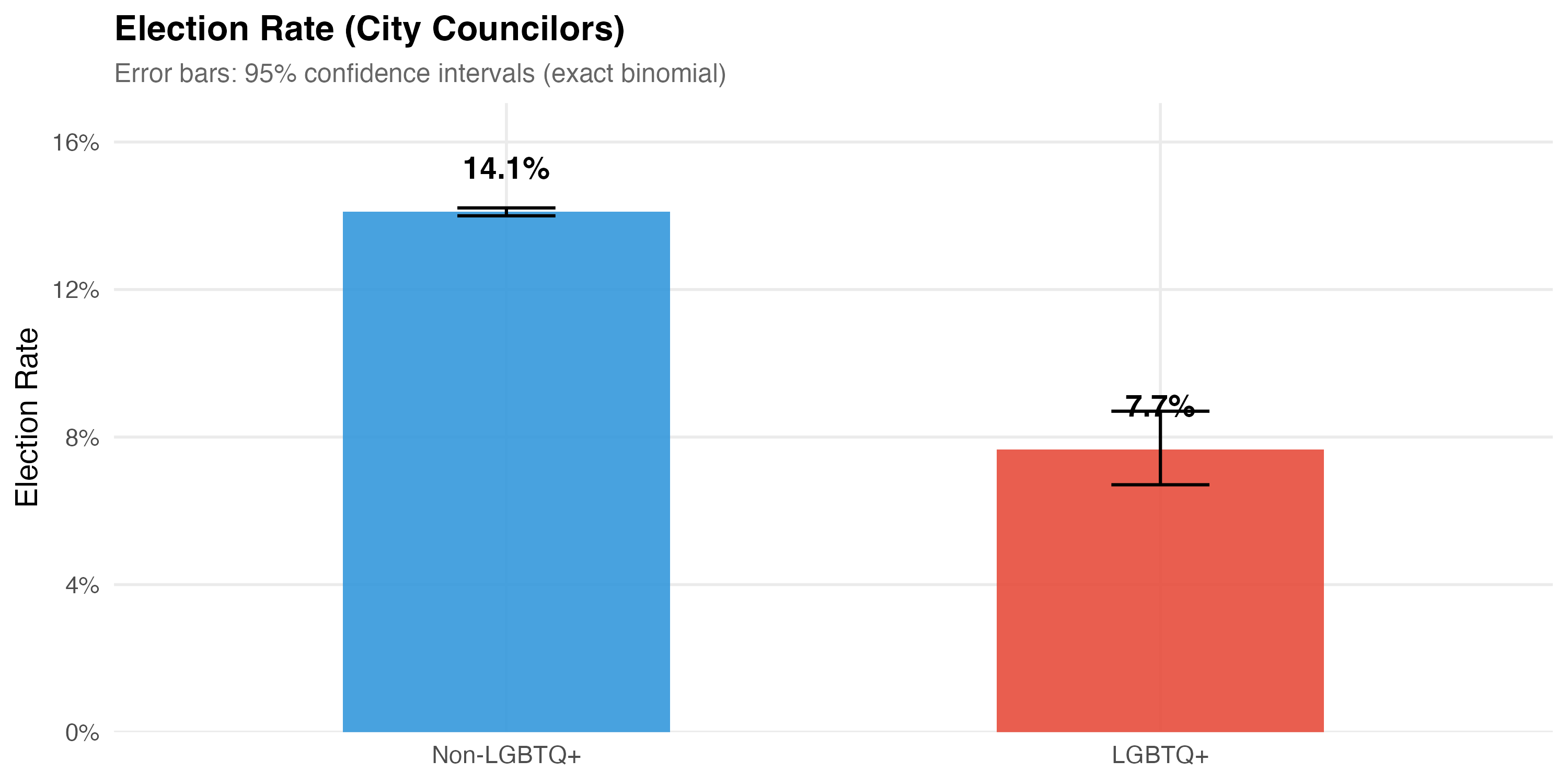 | City Councilor | LGBTQ+ | 2,833 | 217 | 7.7% | [6.7%, 8.7%] |
