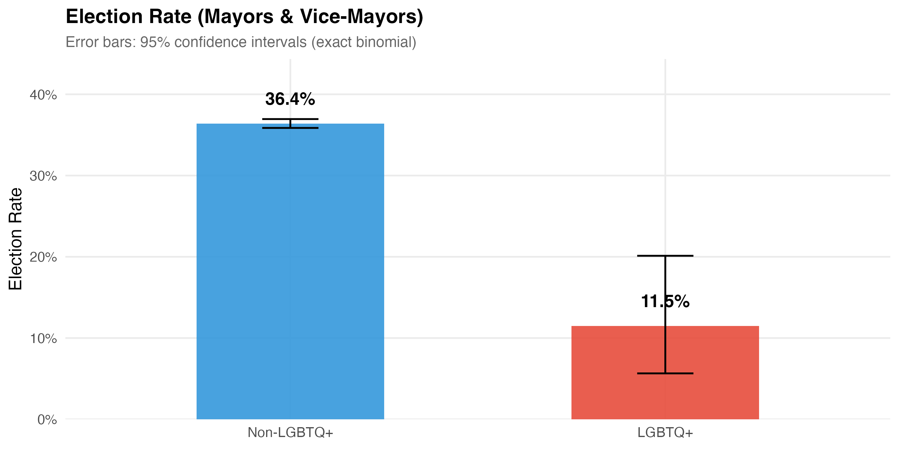 | Vice-Mayor | LGBTQ+ | 49 | 8 | 16.3% | [7.3%, 29.7%] |