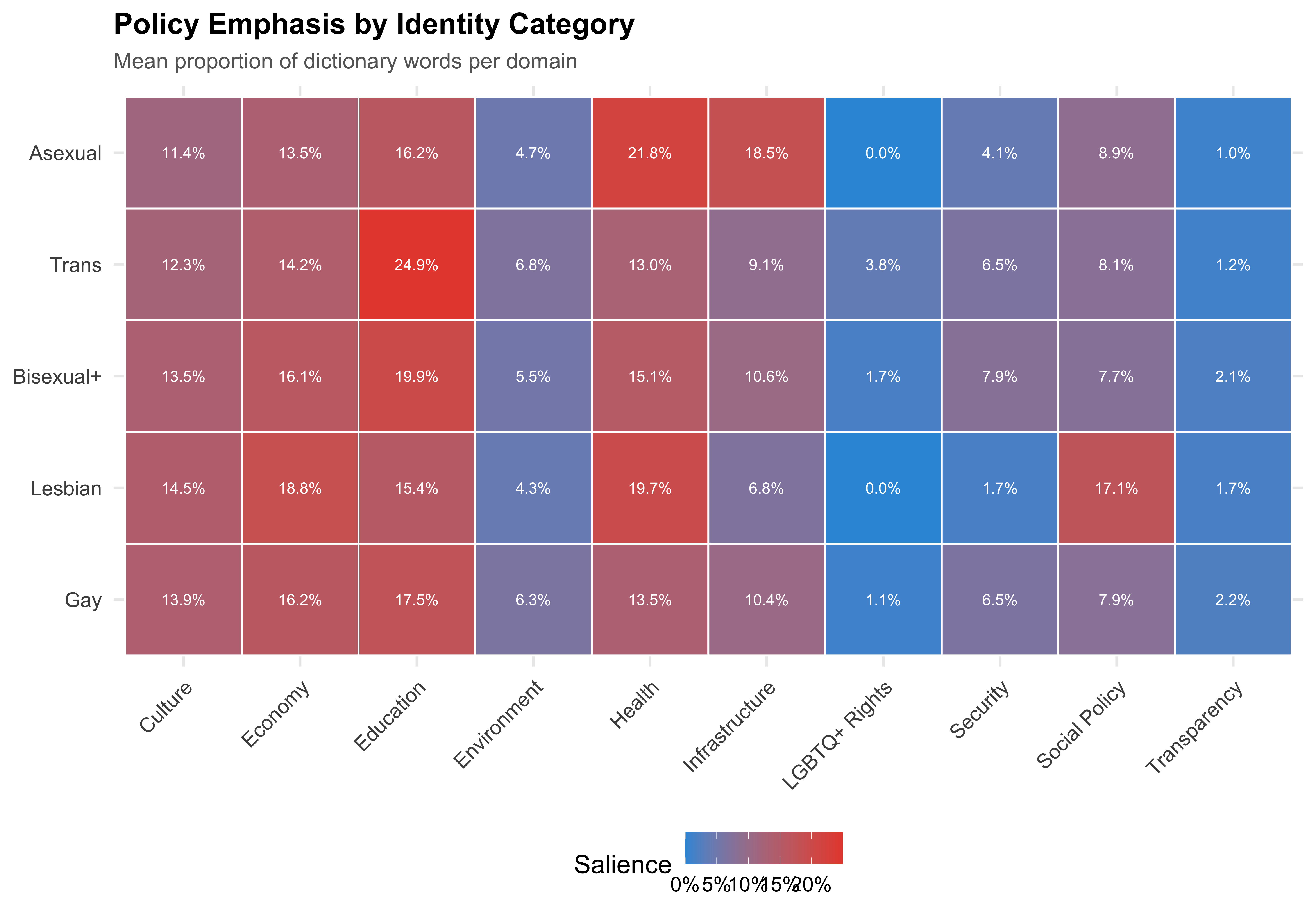 Policy emphasis: The custom Portuguese-language dictionary reveals whether LGBTQ+ candidates place differential emphasis on specific policy domains — education, health, security, economy, social policy, environment, infrastructure, LGBTQ+ rights, culture, and transparency.