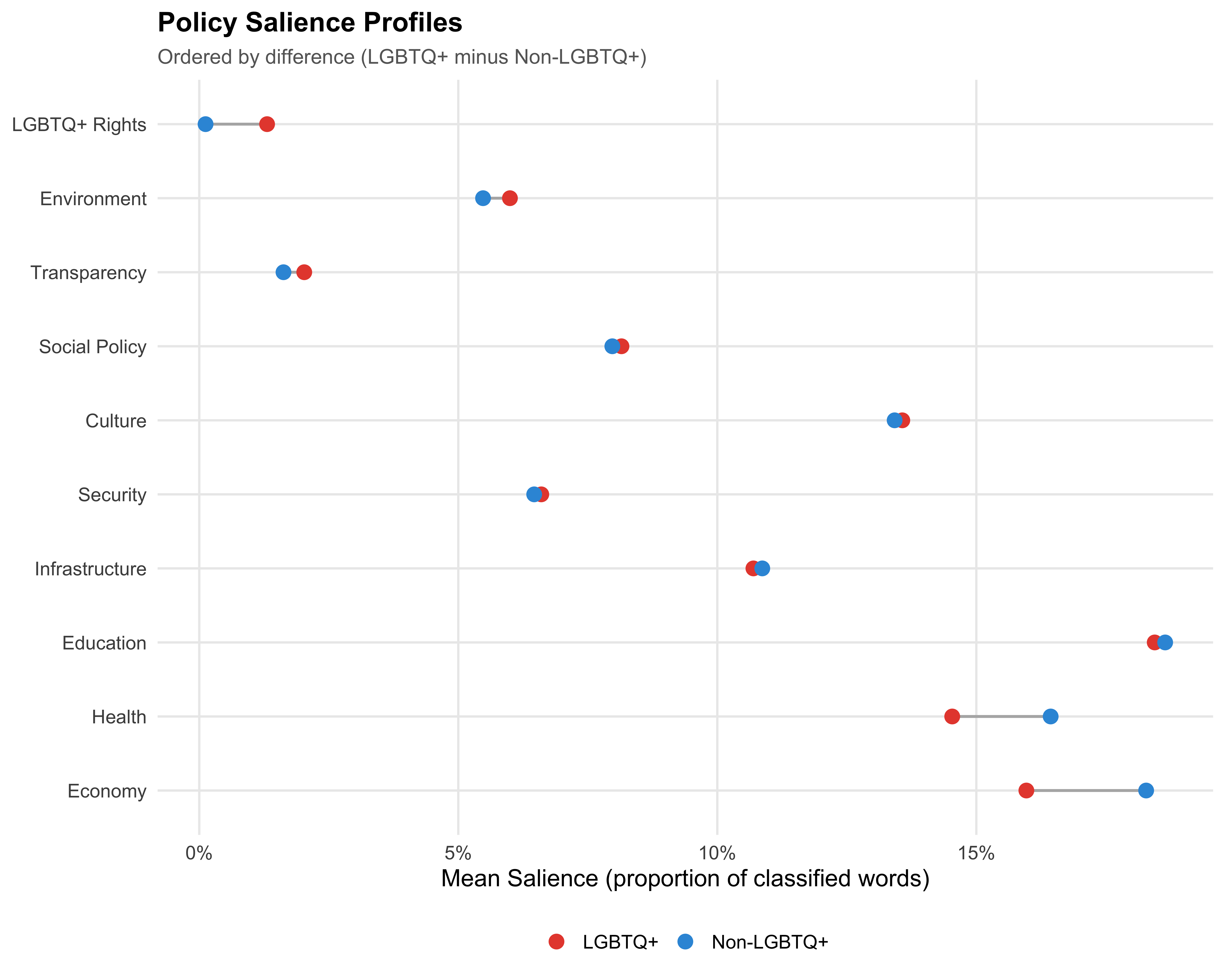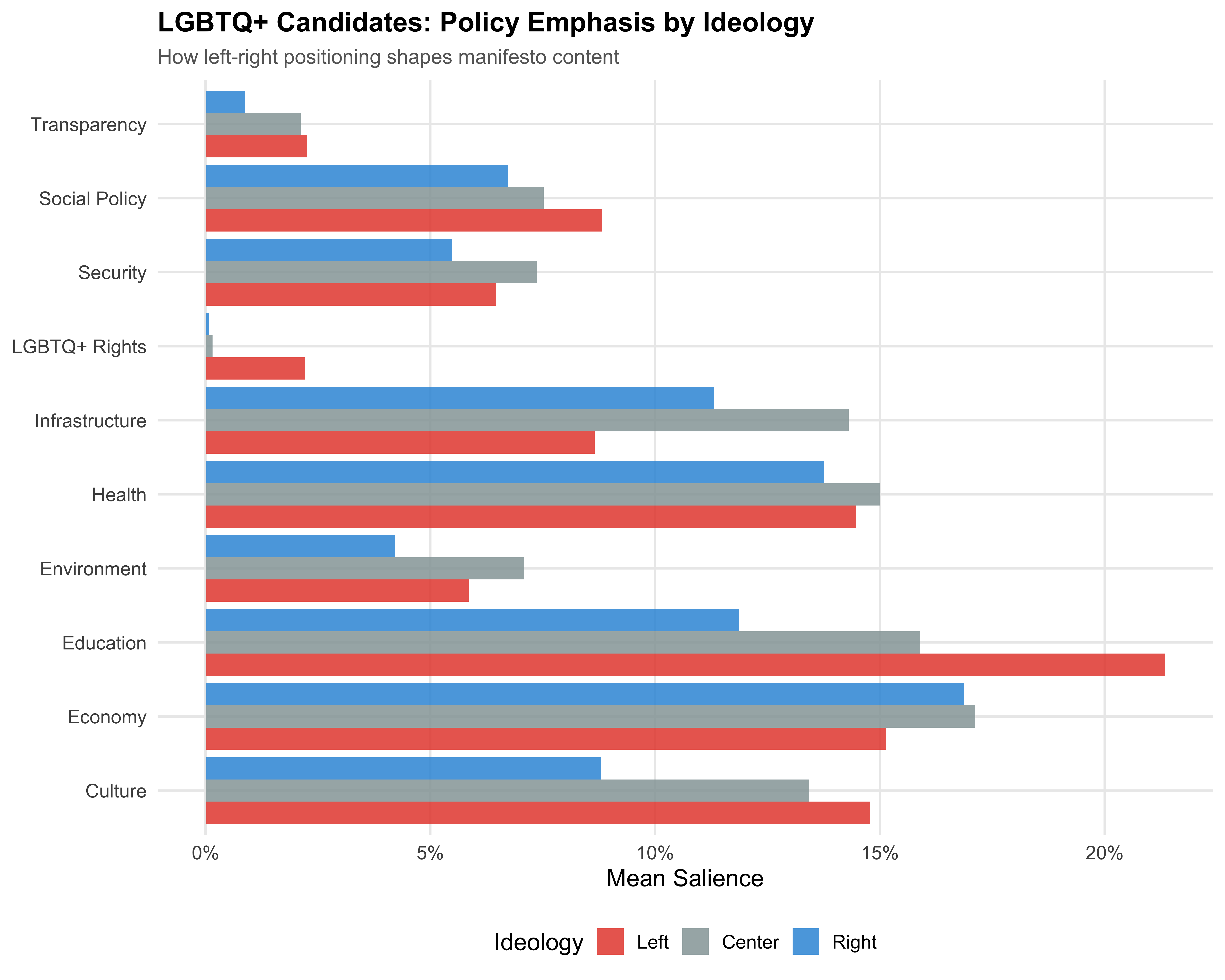 Figure 9: Policy Salience by Ideology Among LGBTQ+ Candidates